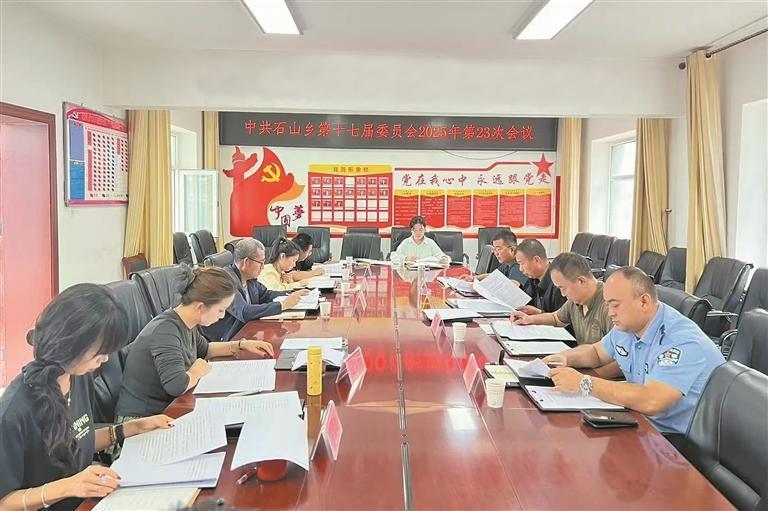 穿警服的副書記列席鄉鎮黨委會。