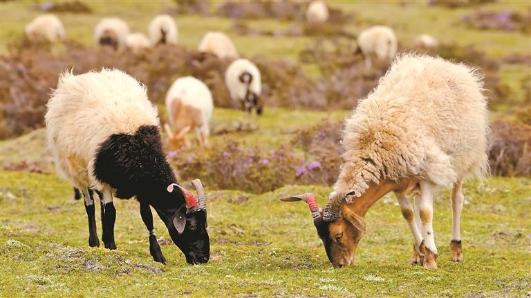 圖為貢覺縣特有的優良畜種阿旺綿羊,成為村民增收致富的穩定選擇。