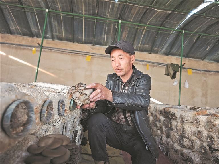 農戶采摘蘑菇。記者 李慶玲 攝