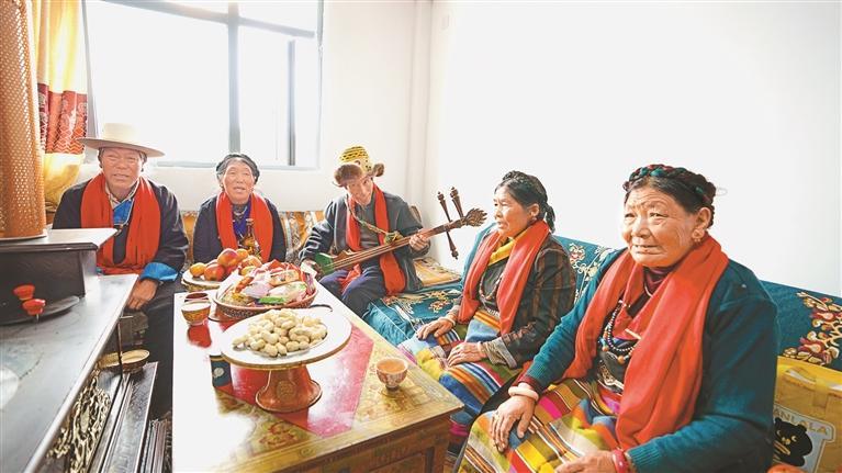 拉孜縣熱薩鄉強公村群眾在新居內共度重陽佳節。記者 旦增嘎瓦 攝