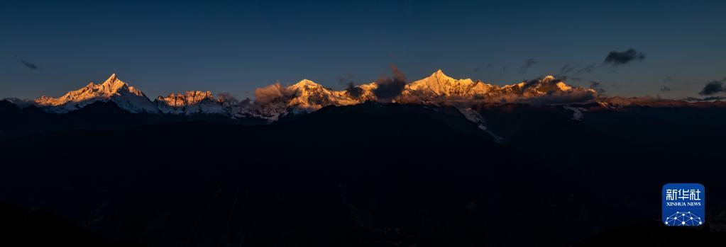 梅里雪山日出景色(無人機(jī)照片,10月28日攝)。新華社記者 江文耀 攝