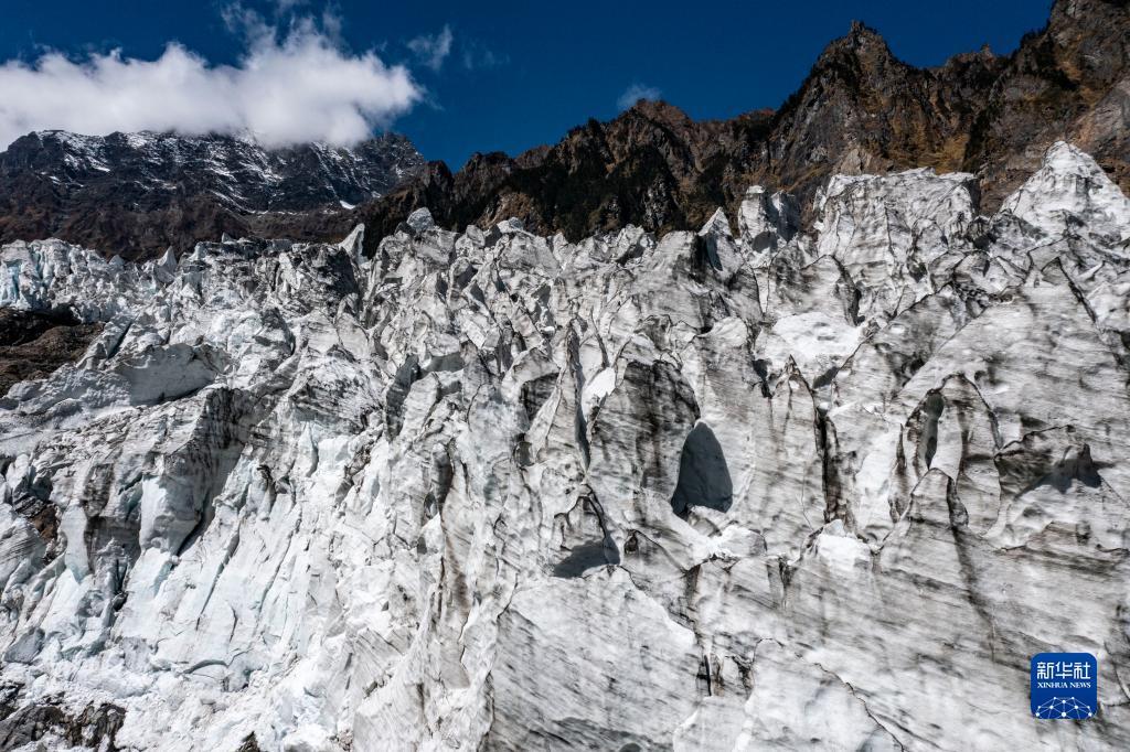 10月28日拍攝的明永冰川一景(無人機(jī)照片)。新華社記者 江文耀 攝