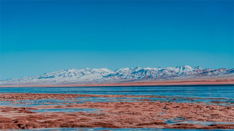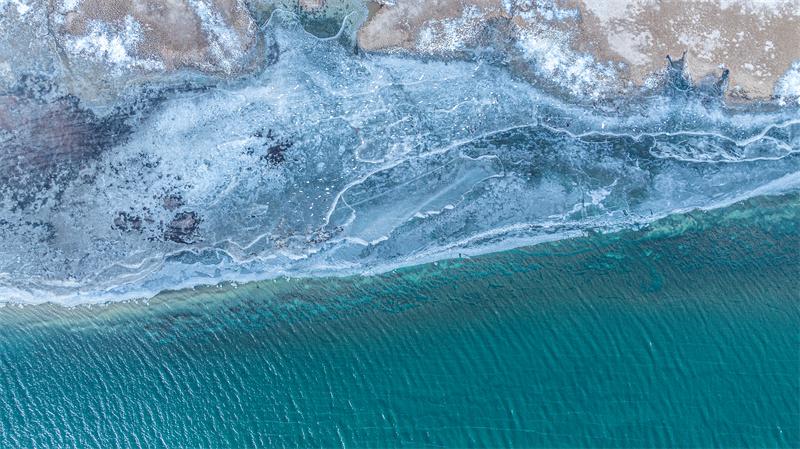 近日,地處柴達木盆地的青海省都蘭縣阿拉克湖進入冰封季,雪山下的湖水在陽光下閃閃發(fā)亮,光影流轉(zhuǎn)處,雪山與湖同在,美得令人窒息。