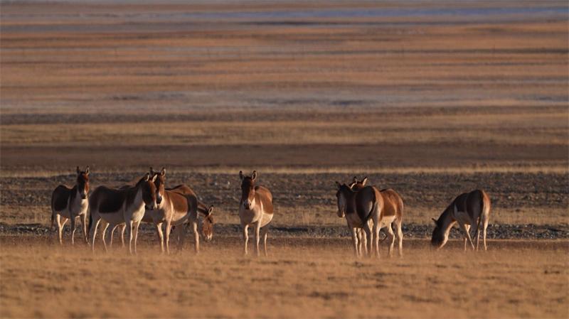 藏野驢在草原上覓食。吳永明攝