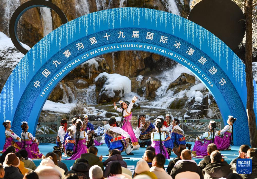 ??1月4日,演員在中國九寨溝第十九屆國際冰瀑旅游節開幕式上表演。新華社記者 王曦 攝
