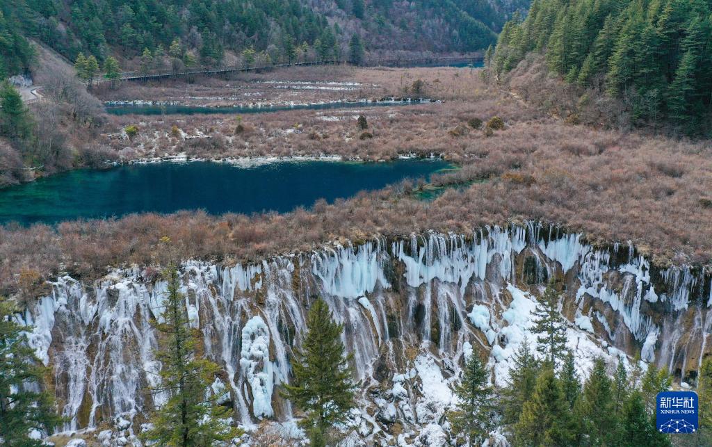 ??這是1月4日在四川省九寨溝風景名勝區拍攝的諾日朗瀑布形成的冰瀑景觀(無人機照片)。新華社記者 王曦 攝
