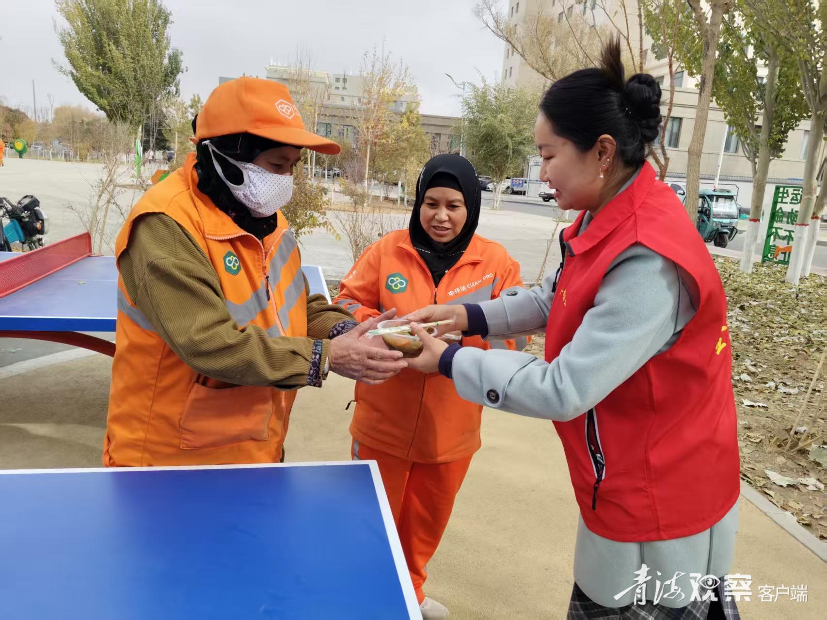 “鍋開了,奶茶香飄滿巷啦!”11月10日,海西蒙古族藏族自治州格爾木市楊樹巷社區(qū)小廣場上煙火升騰,三口大鐵鍋“咕嘟咕嘟”冒著熱氣。居民圍在鍋邊,有的攪動香濃的奶茶,有的剝著剛出鍋的茶葉蛋,歡聲笑語中,冬日的寒意被驅(qū)散得一干二凈。