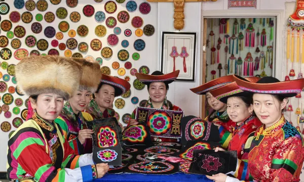 初冬時節,海東市互助土族自治縣胡蘭索卡的盤繡基地里歡聲笑語,數十名當地婦女飛針走線,用雙手繡出美好生活新愿景。