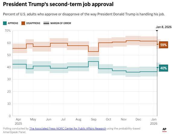 特朗普第二任期執政滿意度圖表。圖片來源:美聯社