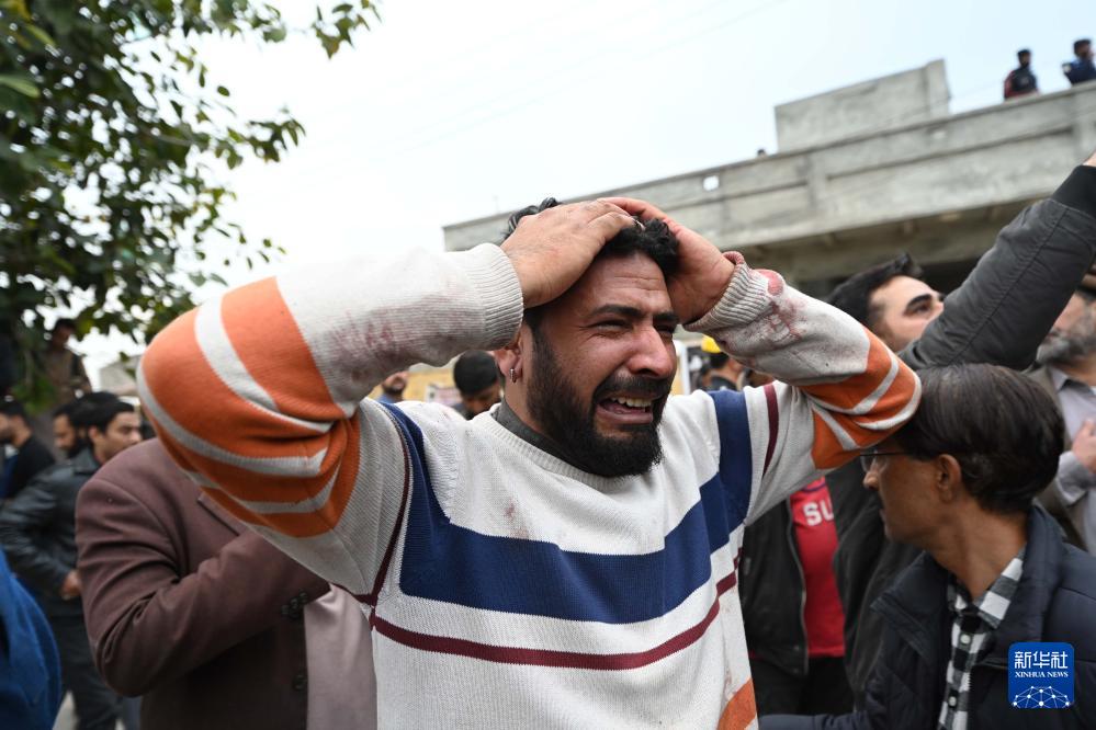 2月6日,在巴基斯坦首都伊斯蘭堡,一名男子在爆炸現場悼念遇難者。新華社發 (艾哈邁德·卡邁勒攝)