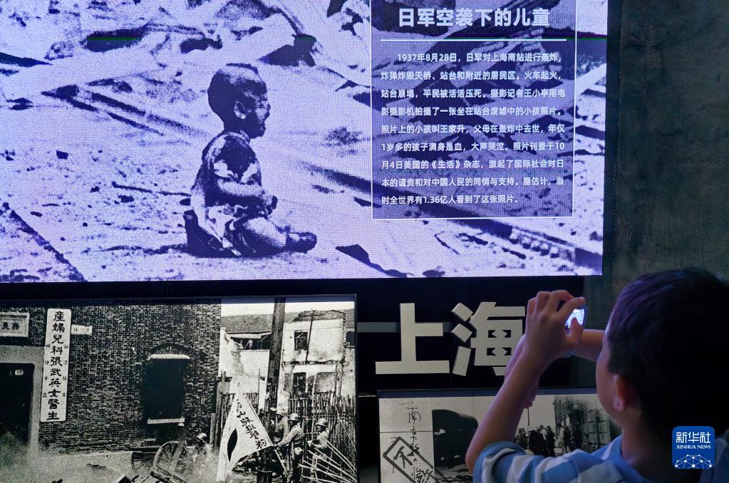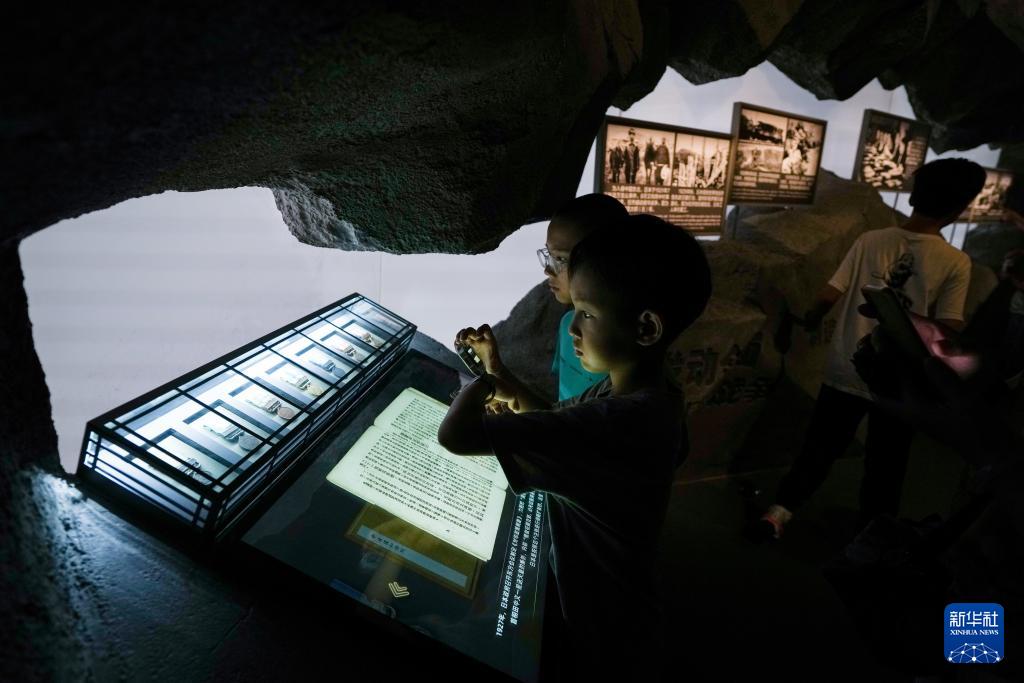 一名小朋友在中國人民抗日戰爭紀念館《為了民族解放與世界和平》主題展覽參觀(7月22日攝)。新華社記者 鞠煥宗 攝