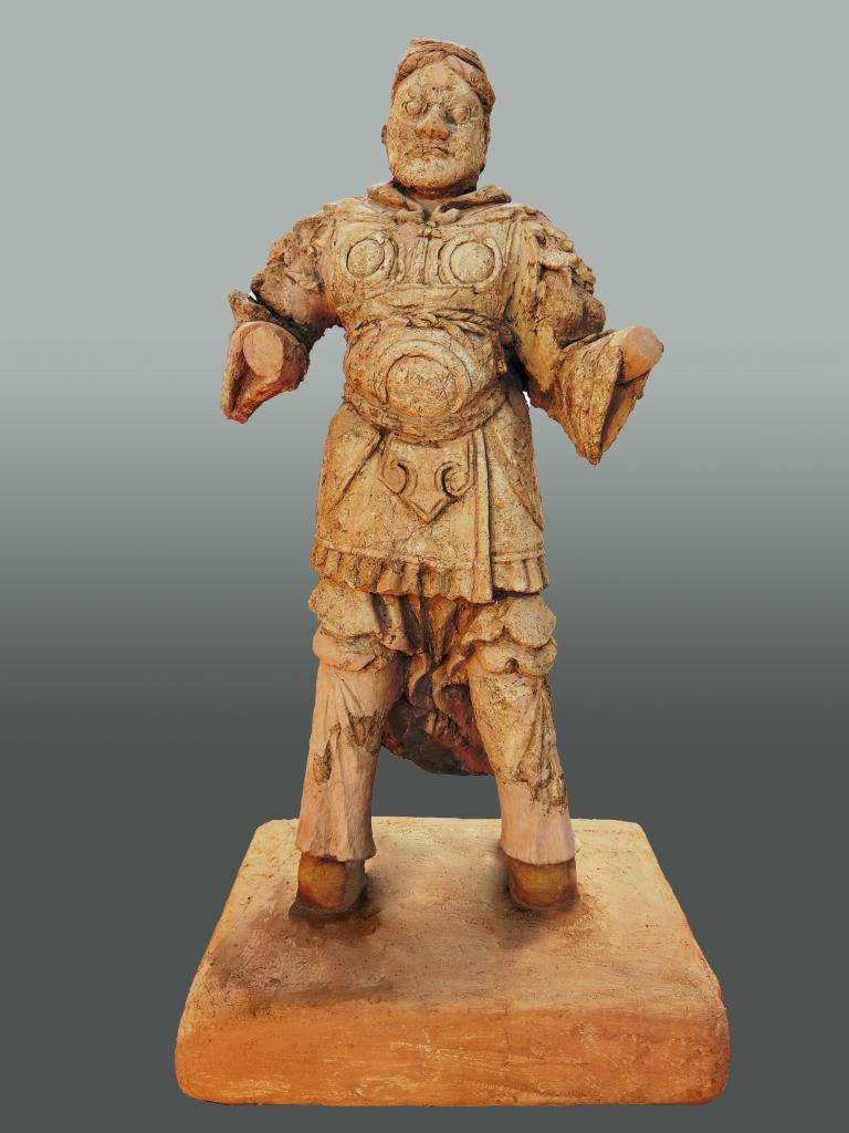 這是庫(kù)車(chē)市友誼路墓群發(fā)掘出土的武士泥俑。(新疆文物考古研究所供圖)