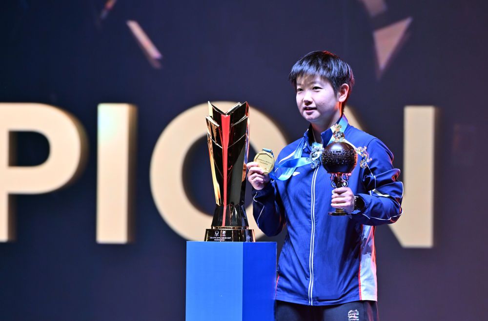 領(lǐng)獎(jiǎng)臺(tái)上,孫穎莎撫摸著獎(jiǎng)杯,經(jīng)歷了52天的沉寂后,傷病的煎熬、勝利的渴望,都在此刻找到了歸處。