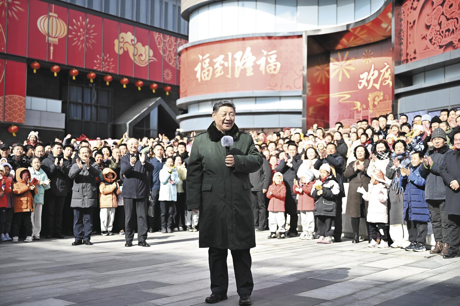 2月9日至10日,中共中央總書記、國家主席、中央軍委主席習近平在北京考察并看望慰問基層干部群眾。這是10日上午,習近平在東城區隆福寺街區考察時,向全國各族人民和香港同胞、澳門同胞、臺灣同胞、海外僑胞致以美好的新春祝福。 新華社記者 燕雁 攝