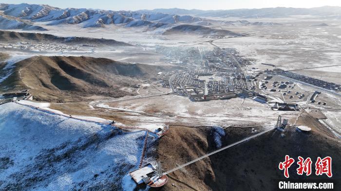 圖為雪后的瑪曲縣阿萬倉鎮。(無人機照片)中新社記者 九美旦增 攝