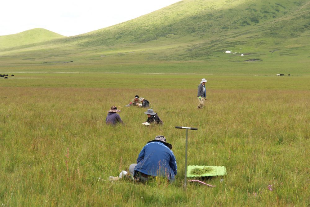 2021年8月,實驗團隊在青藏高原東部高寒草甸進行植物群落調查研究。(受訪者供圖)