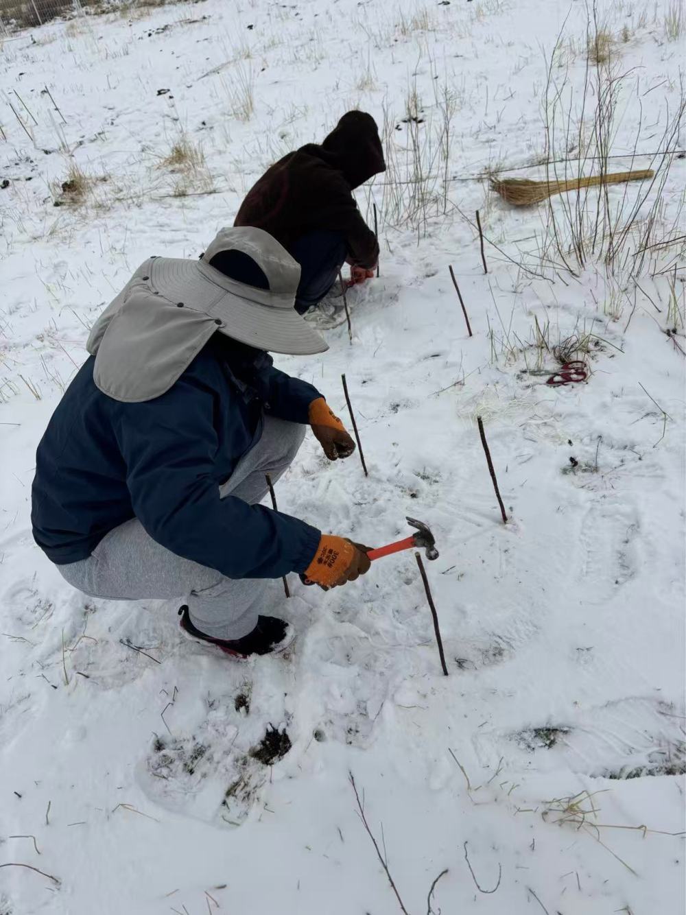 2025年4月,實驗團隊在青藏高原東部設置長久觀測的樣方框。(受訪者供圖)