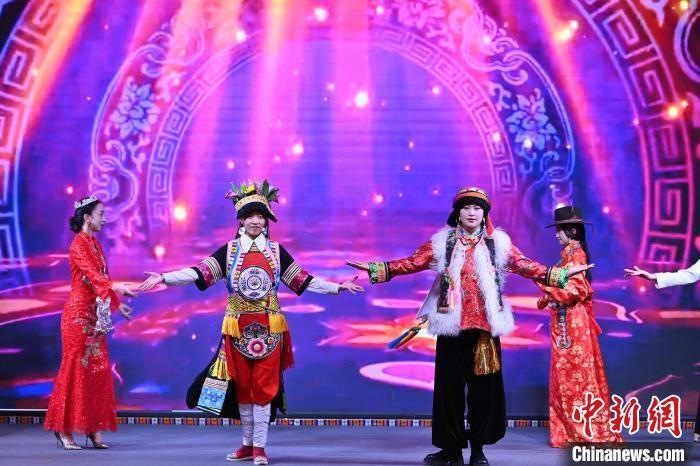 6月10日,甘肅甘南藏族自治州合作市,2025甘南文旅全球媒體發(fā)布會(huì)現(xiàn)場(chǎng)的民族服飾秀。中新社記者 九美旦增 攝