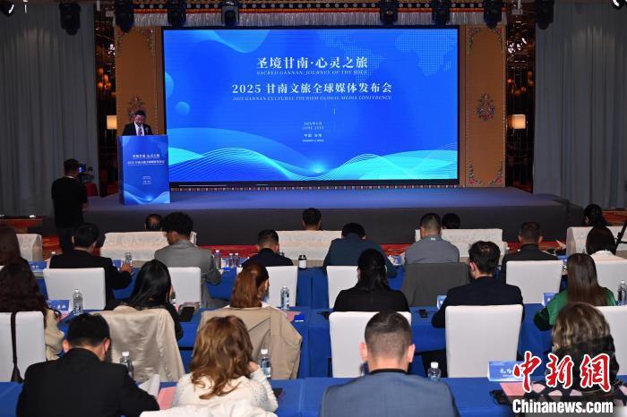6月10日,甘肅甘南藏族自治州合作市,2025甘南文旅全球媒體發(fā)布會(huì)現(xiàn)場(chǎng)。中新社記者 九美旦增 攝