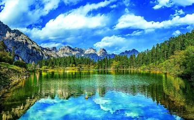 清澈的湖水是這畫卷靈動的詩行。尕海湖、骨麻湖、達宗湖等大小不等的湖泊鑲嵌在綠色的草原和林海之中。陽光灑落湖面,微風過處,泛起粼粼波光,倒映著藍天白云和遠處雪山的輪廓。水中世界與真實天地交相輝映,界限變得模糊而夢幻。