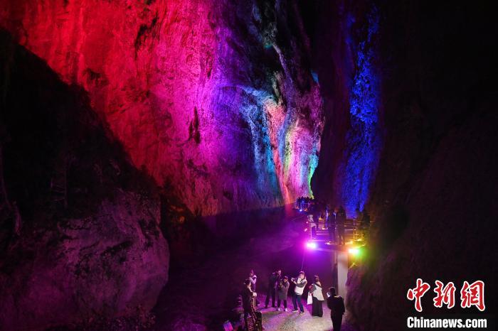 圖為海外華媒采訪團夜游則岔石林,看怪石嶙峋,感受自然鬼斧神工。九美旦增 攝