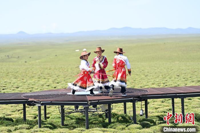 盛夏7月,甘肅甘南藏族自治州草原綠毯如茵,迎來旅游旺季。8日至9日,2025海外華文媒體甘南行采訪團深入草原腹地。在夏河桑科草原天境營地,25頂帳篷錯落分布在格桑花海中,營地提供騎馬、藏藥浴、唐卡臨摹等傳統草原生活的體驗服務,游客可體驗獨特的“營地慢生活”。而在合作市美仁大草原,合冶公路穿行而過,新建的觀景臺吸引了游客駐足,遼闊草場與點綴其間的牛羊,展現著高原牧場的原始魅力。
