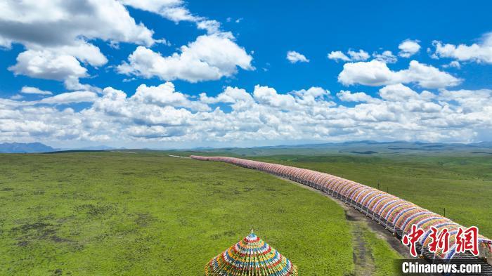 圖為美仁草原的“經幡隧道”。臨潭縣委宣傳部 供圖