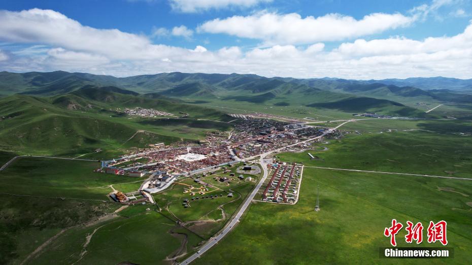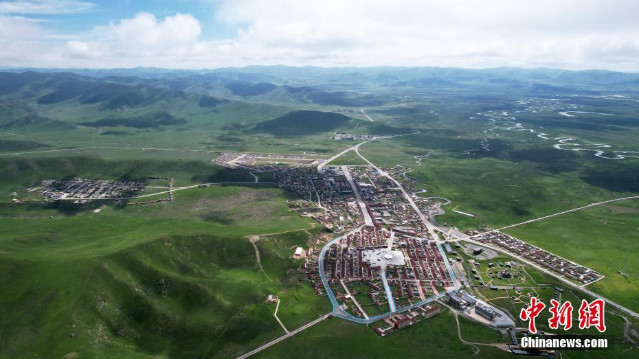 7月12日,航拍視角下的瑪曲縣阿萬倉鎮。(無人機照片)中新社記者 九美旦增 攝
