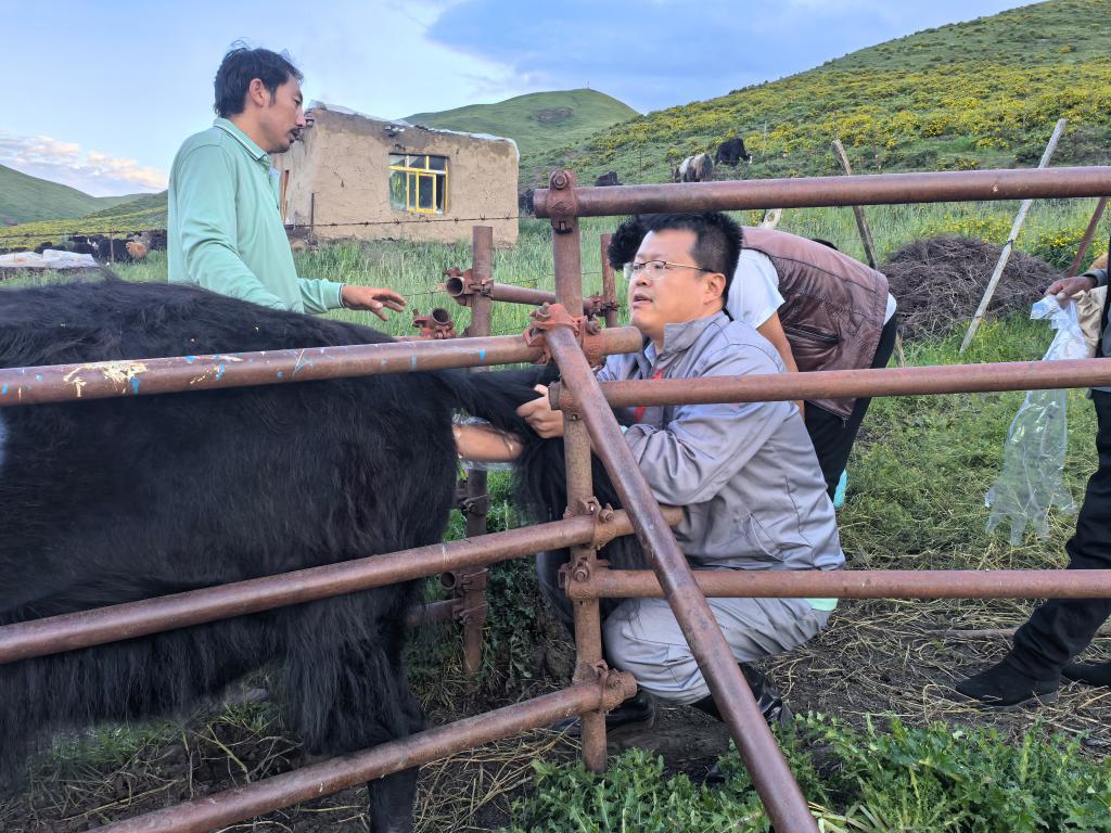 這個牦牛科技小院位于甘南藏族自治州夏河縣阿納村。科研團(tuán)隊(duì)由掛靠在甘肅農(nóng)業(yè)大學(xué)動物醫(yī)學(xué)院的甘肅省家畜胚胎工程技術(shù)創(chuàng)新中心近10位研究生導(dǎo)師及40余名博士、碩士研究生組成,他們來自全國各地,39歲的甘肅農(nóng)業(yè)大學(xué)動物醫(yī)學(xué)院教授潘陽陽是這里的負(fù)責(zé)人。