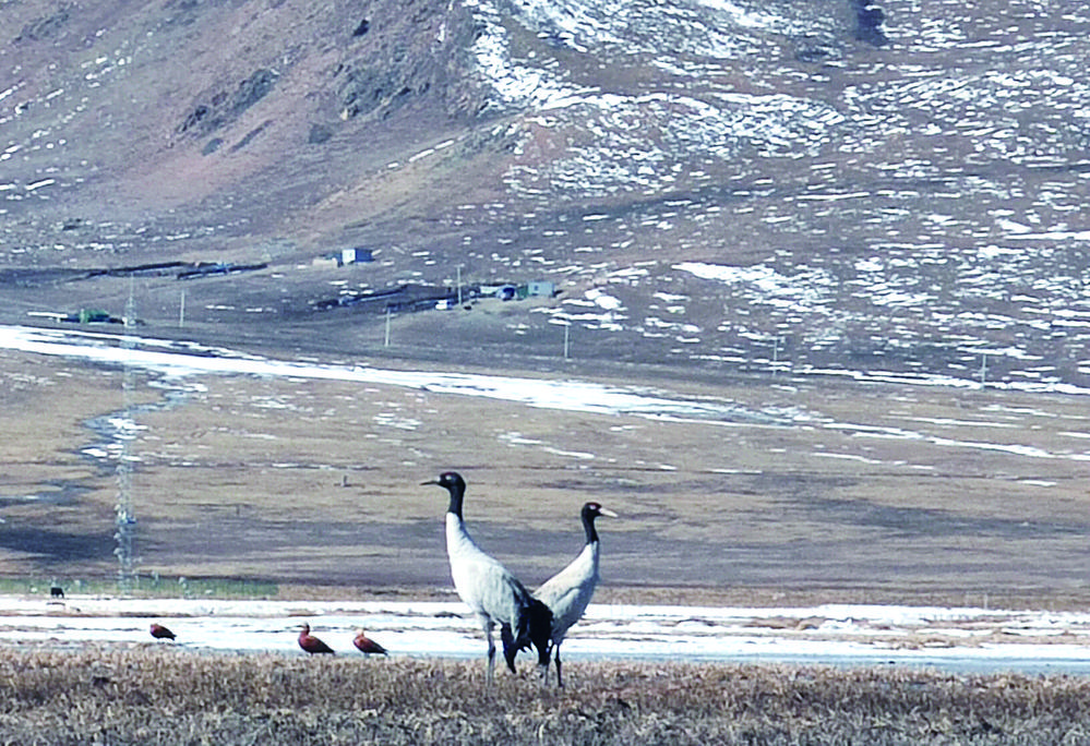 遠眺黑頸鶴。