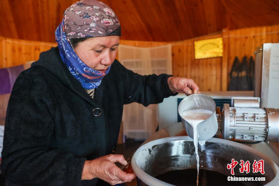 12月6日,在位于青海省海西蒙古族藏族自治州烏蘭縣茶卡鎮(zhèn)以南約18公里處的莫河駝場,工作人員介紹駝奶制品。