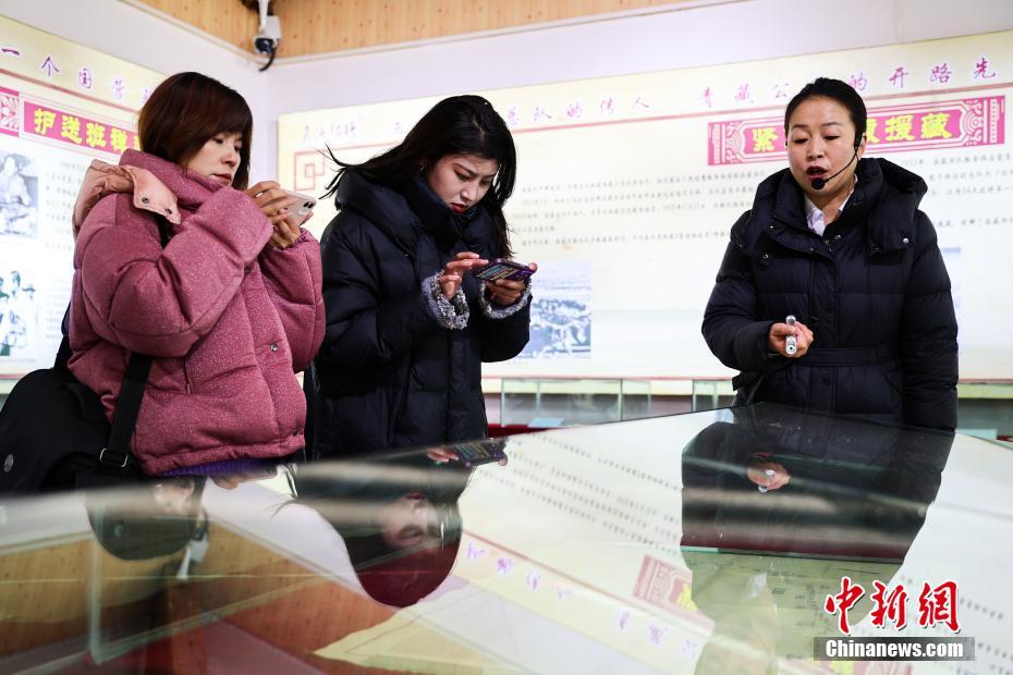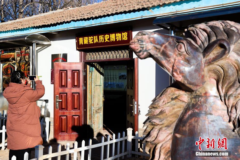 12月6日,在位于青海省海西蒙古族藏族自治州烏蘭縣茶卡鎮(zhèn)以南約18公里處的莫河駝場,參觀人員在陳列館拍攝。