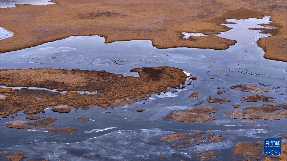 4月8日,生態(tài)管護員在青海隆寶國家級自然保護區(qū)管理站觀測鳥類(無人機照片)。新華社記者 齊芷玥 攝