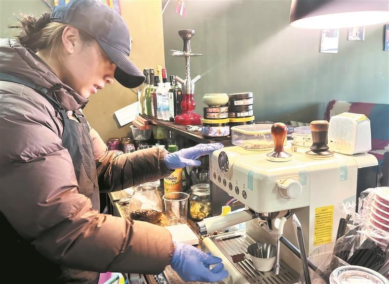 回到索乎日麻鄉(xiāng)的東措,為顧客調(diào)制牦牛奶咖啡。
