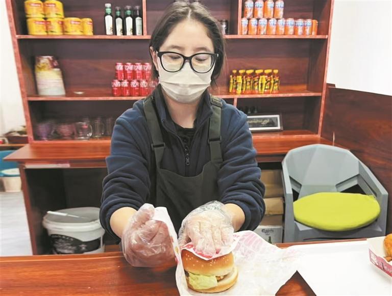 和東措一樣,阿改與仁增拉毛在西寧讀完大學(xué)后,懷著對(duì)家鄉(xiāng)的熱愛,依托本地優(yōu)質(zhì)牦牛肉資源,在家鄉(xiāng)開起了主打全新理念的漢堡店。創(chuàng)新口味的特色漢堡,滿足不同顧客的味蕾需求。同時(shí),還搭配香脆的薯?xiàng)l、爽口的飲品,牧民帶著孩子來鄉(xiāng)里趕集,不用去省城就能吃到別樣風(fēng)味的美食。