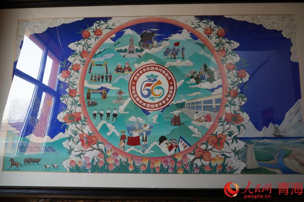 以民族團結為主題的唐卡作品。人民網記者 況玉攝