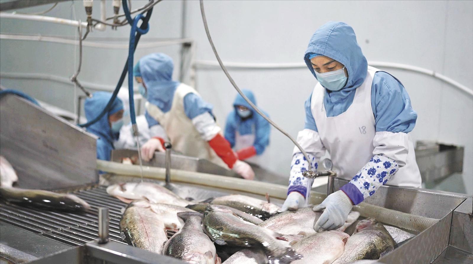 龍洋之鮮的虹鱒魚初級加工線。本報記者 楊燕玲 攝