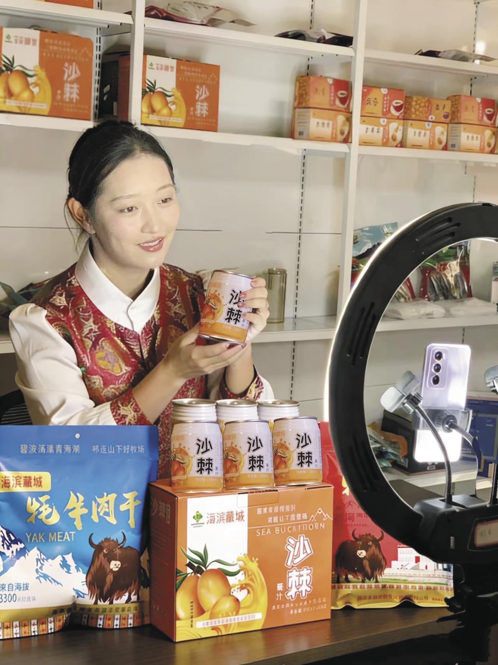 主播展示剛察特色農畜產品。剛察青湖農投供圖