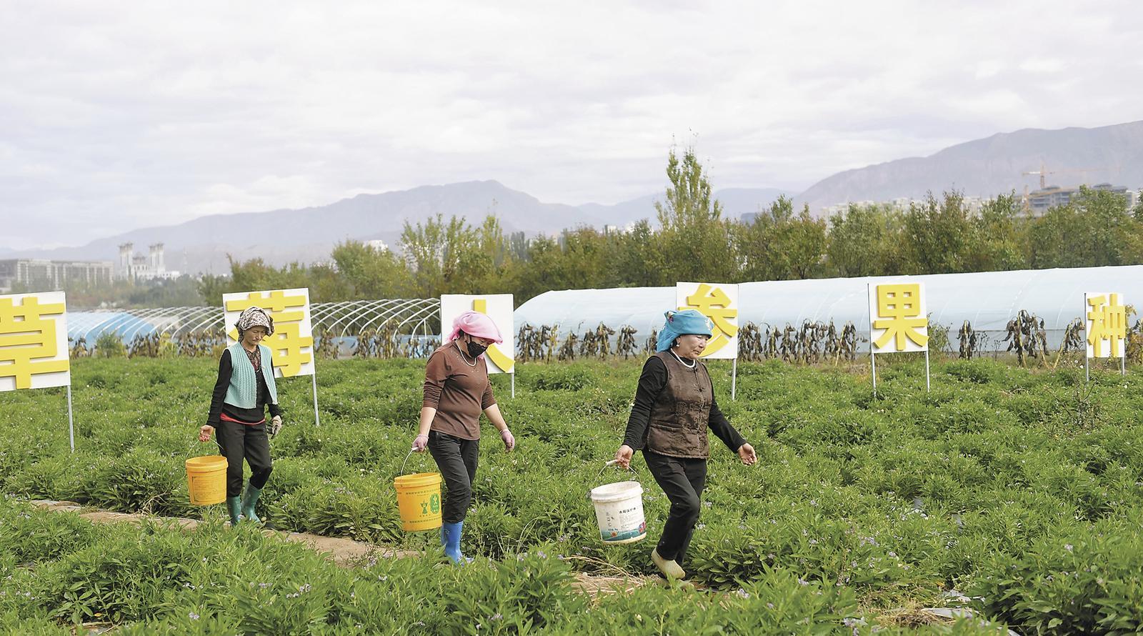 村民正在人參果種植基地內(nèi)勞作。記者 張多鈞 攝