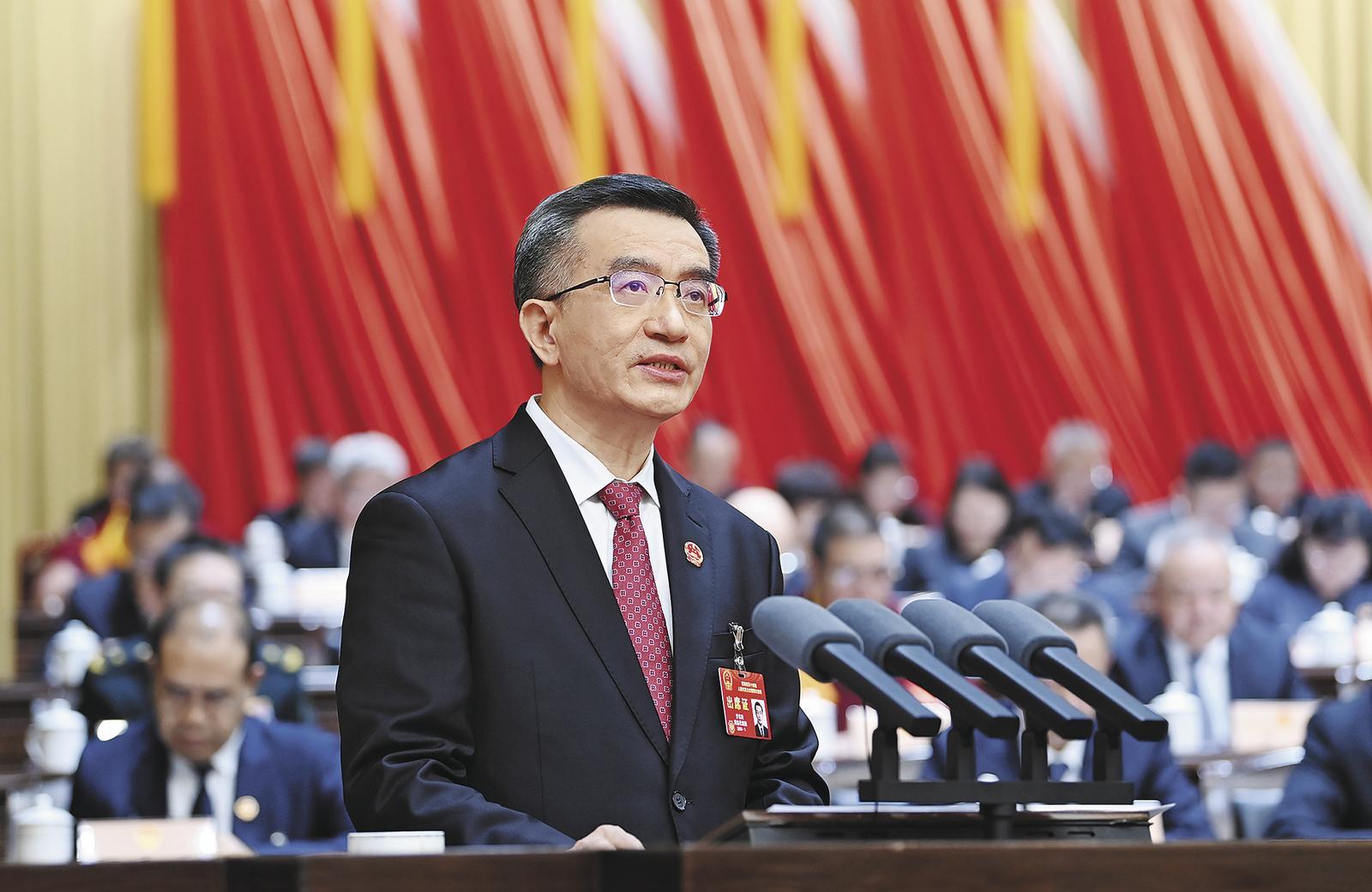 在熱烈的掌聲中,省長羅東川代表省人民政府向大會作政府工作報告。報告共三個部分:一是2025年和“十四五”時期工作回顧;二是“十五五”主要目標任務;三是2026年重點工作任務。