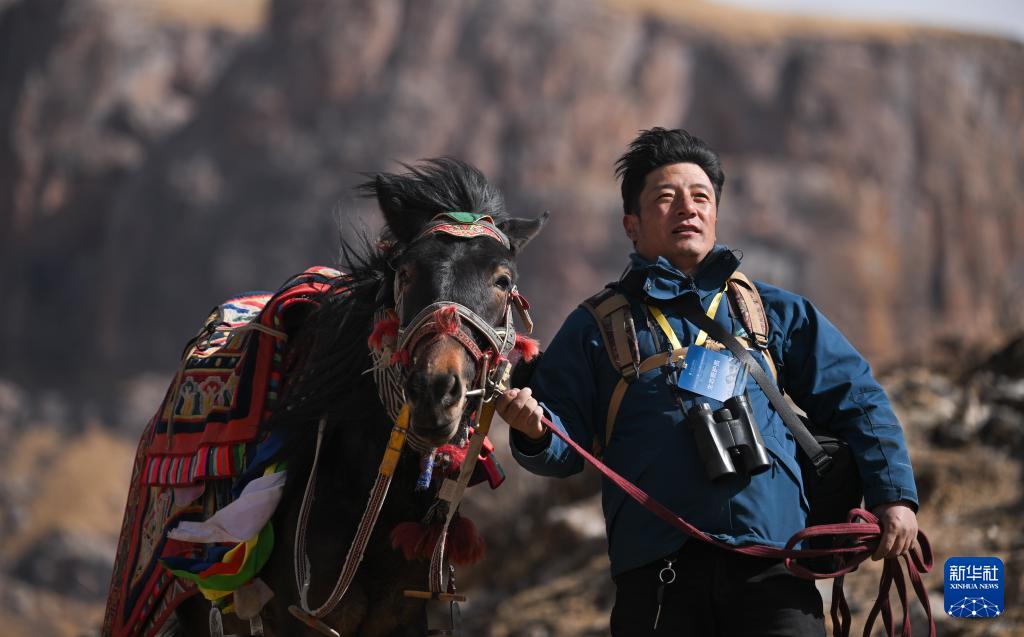1月29日,更尕在青海省玉樹藏族自治州雜多縣昂賽鄉巡護。新華社記者 張龍 攝
