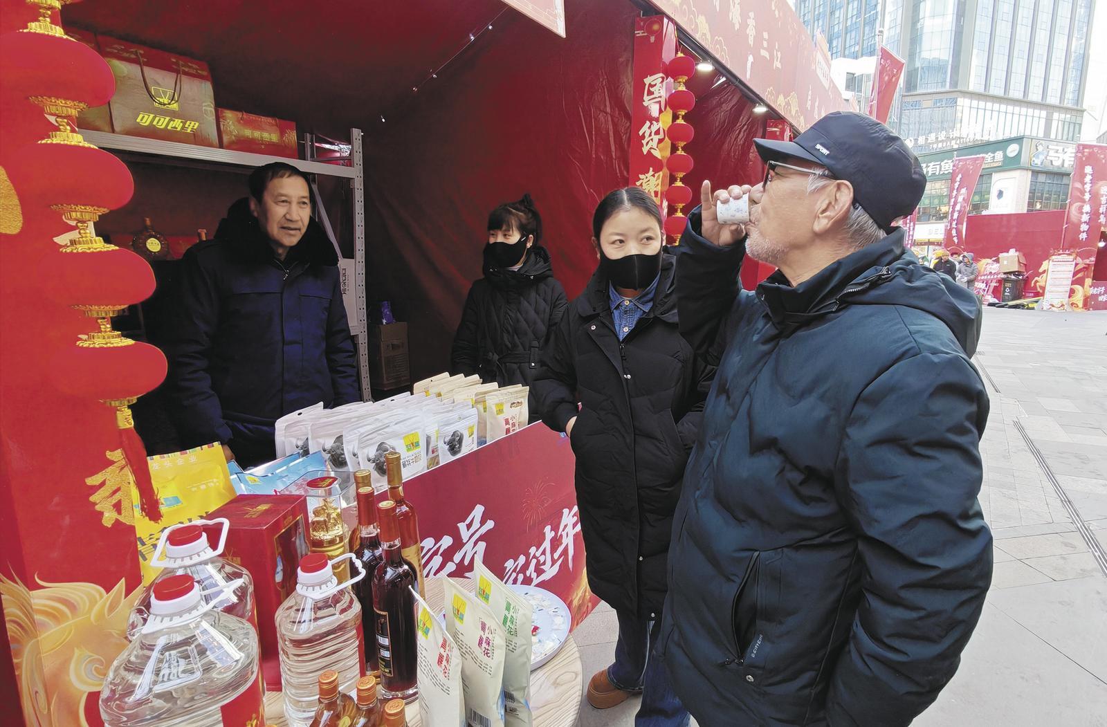 市民品嘗青海特色青稞酒。 譚梅 攝
