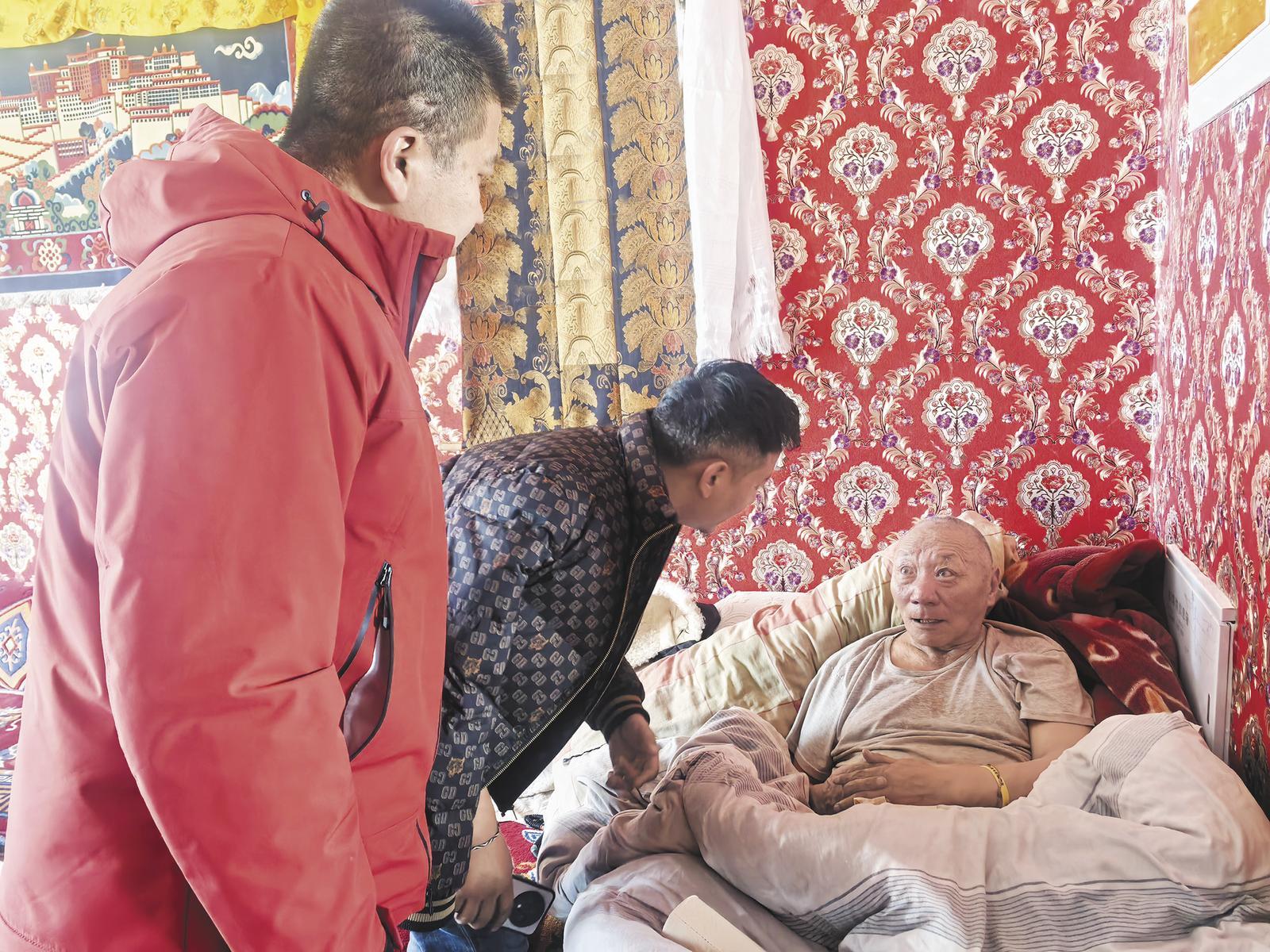 瑪多縣黃河鄉副鄉長陳瑞一行走訪慰問群眾。黃河鄉黨委供圖