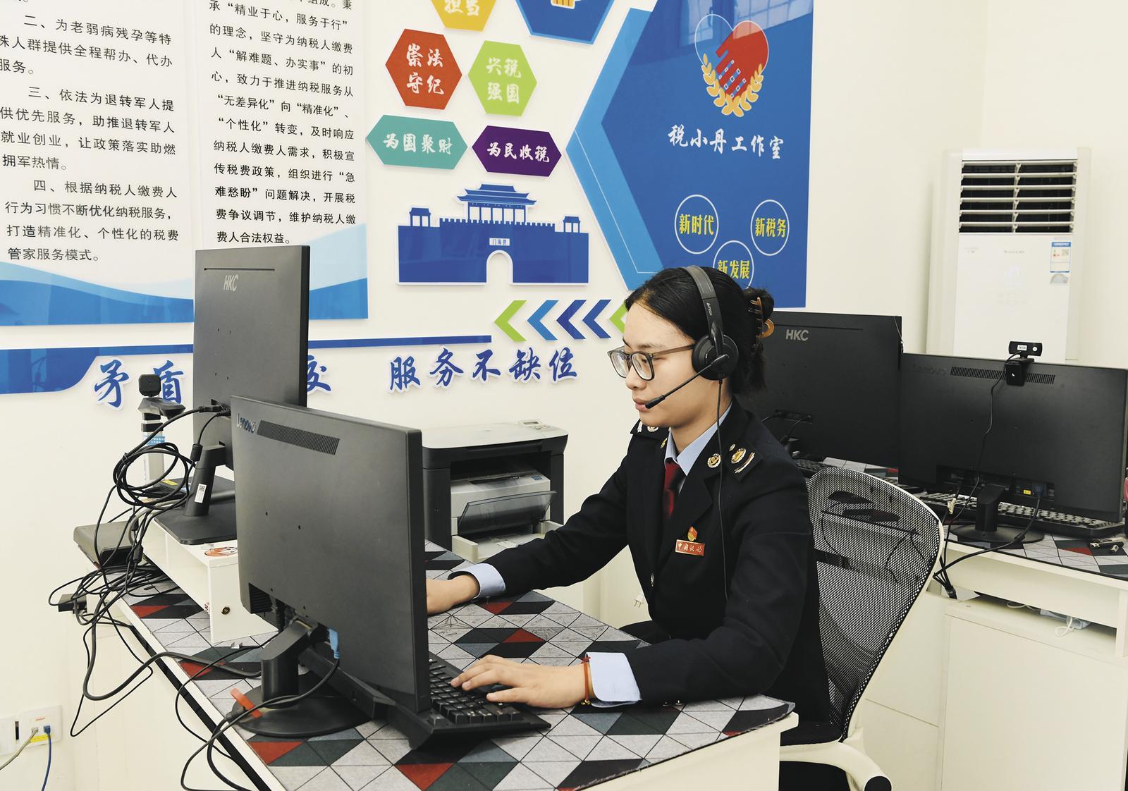 湟源縣稅務局值班干部與納稅人在線互動。通訊員 李生鵬 攝