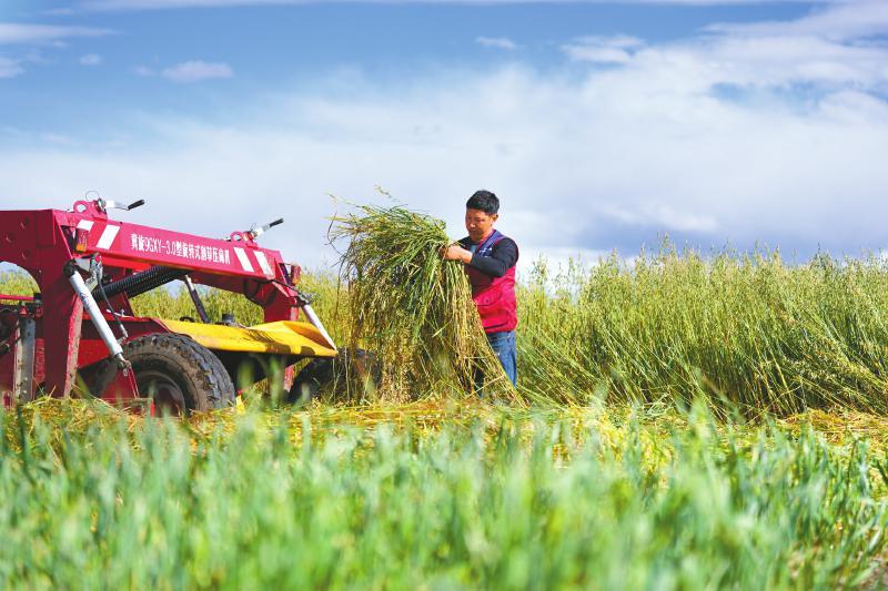 紅原縣益眾農(nóng)技服務(wù)專業(yè)合作社帶頭人旦真貢在收割牧草(資料圖片)。紅原縣委宣傳部供圖