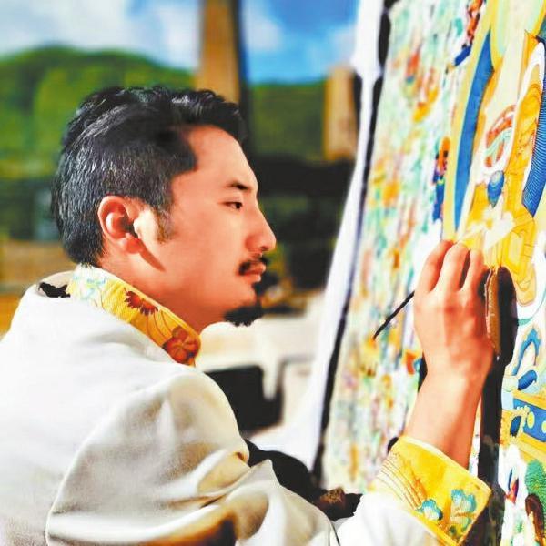 阿壩州青俊人才、高級(jí)唐卡畫師三郎羅爾伍在作畫(資料圖片)。馬爾康市委宣傳部供圖