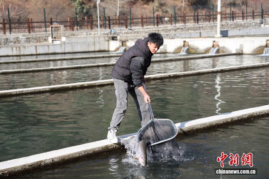 12月26日,位于四川省阿壩州理縣薛城鎮甲米村的高原特色冷水魚養殖基地內,工作人員查看鱒魚生長情況。該基地處于海拔超2000米的孟屯河畔,水源來自高海拔地區的雪山融水,年均水溫9-10℃,目前養殖有鱒魚、黃河魚、雅魚等10萬余尾。基地將優良生態資源與現代養殖技術結合,通過“魚經濟”發展,豐富業態、增加就業、農旅融合壯大了該村集體經濟,同時拓寬了村民增收致富渠道。
