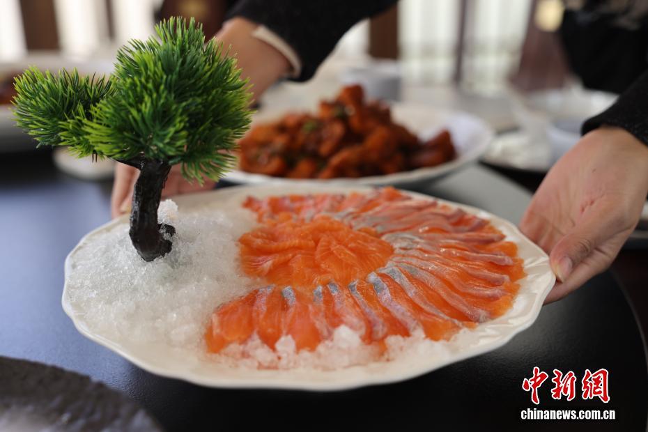 12月26日,位于四川省阿壩州理縣薛城鎮甲米村的高原特色冷水魚養殖基地內,工作人員展示當日打撈的虹鱒魚魚片。該基地處于海拔超2000米的孟屯河畔,水源來自高海拔地區的雪山融水,年均水溫9-10℃,目前養殖有鱒魚、黃河魚、雅魚等10萬余尾。基地將優良生態資源與現代養殖技術結合,通過“魚經濟”發展,豐富業態、增加就業、農旅融合壯大了該村集體經濟,同時拓寬了村民增收致富渠道。