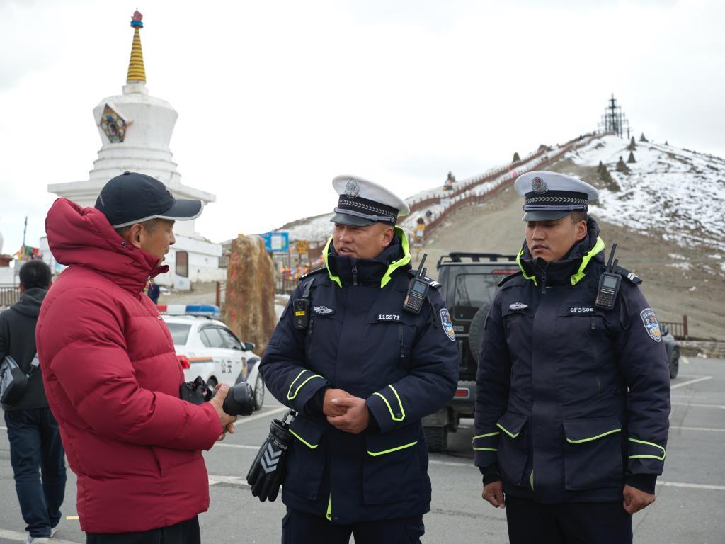 “‘二臺子’那個彎道背陰,冰還沒化,要把警車開到路上去提醒。‘老2885’彎急,要多注意。‘小壩子’要守兩個人,提醒車子一定不能占道停在路上!”四郎多吉在對講機里“排兵布陣”。