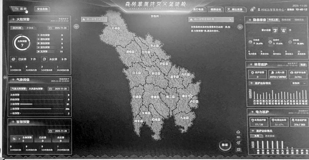 甘孜州是全國森林草原防火重點區(qū)域。如今,在這片土地上,“人防”的堅守與“技防”的賦能仍在深度融合。“甘快傳”與無人機的協(xié)同應用,推動我州實現(xiàn)“三個轉(zhuǎn)變”:從“人海戰(zhàn)術(shù)”向“智慧防控”轉(zhuǎn)變,全州1211個防火卡點配備智能終端,實時上傳巡護數(shù)據(jù);從“被動處置”向“主動預防”轉(zhuǎn)變,通過AI分析氣象數(shù)據(jù),提前48小時預警高火險區(qū)域;從“單兵作戰(zhàn)”向“全民參與”轉(zhuǎn)變,群眾通過小程序參與防滅火工作,形成“人人都是護林員”的格局。康巴大地正以持續(xù)的努力,讓青山常綠、林海安瀾,為人與自然和諧共生的現(xiàn)代化寫下生動注腳。
